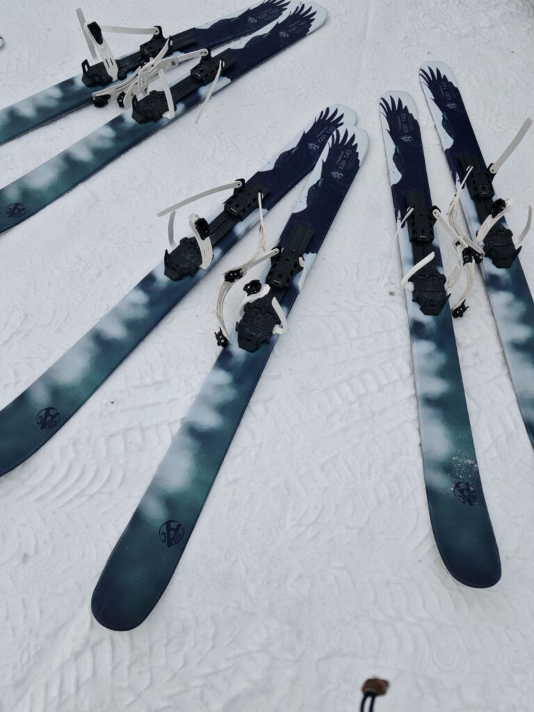Neuer Tag. Neue Ski. Eine Art Tourenski, aber ohne Bindung. Stattdessen werden die eigenen Schuhe festgezurrt. Bremsen geht mit diesem Ski zu meinem Bedauern auch nicht, aber das braucht man im Tiefschnee zum Glück auch nicht.